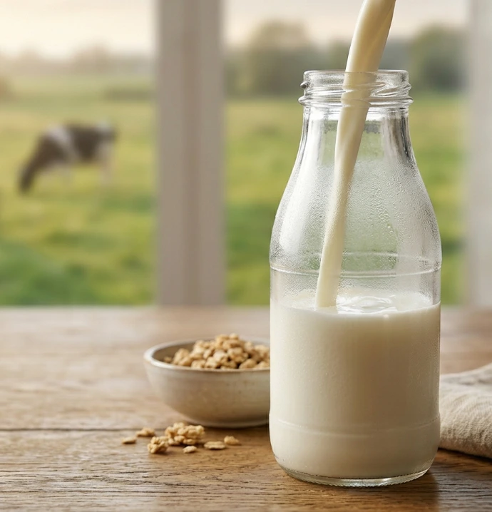Milk is the lacteal secretion of mammary glands, a white opaque fluid with fat in emulsion, proteins and minerals in colloidal form, and lactose in true solution.