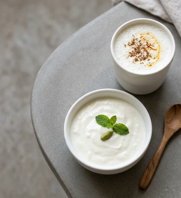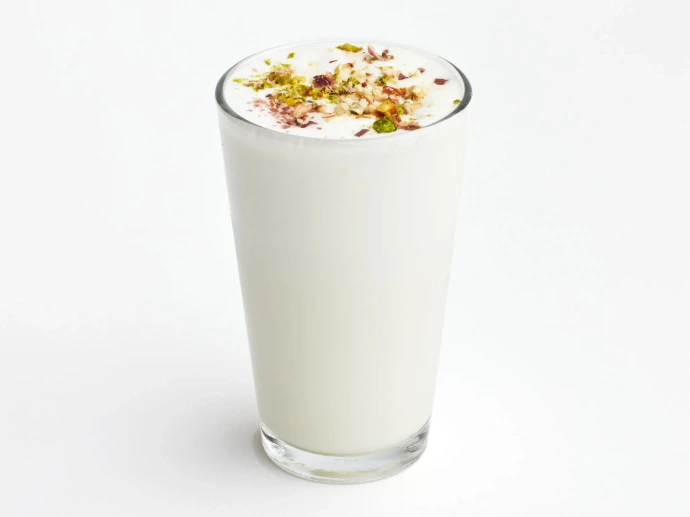 Lassi is a fermented milk beverage produced by the growth of selected lactic acid bacteria in heat-treated milk, typically broken into fine particles by agitation, sweetened with sugar, and often flavored